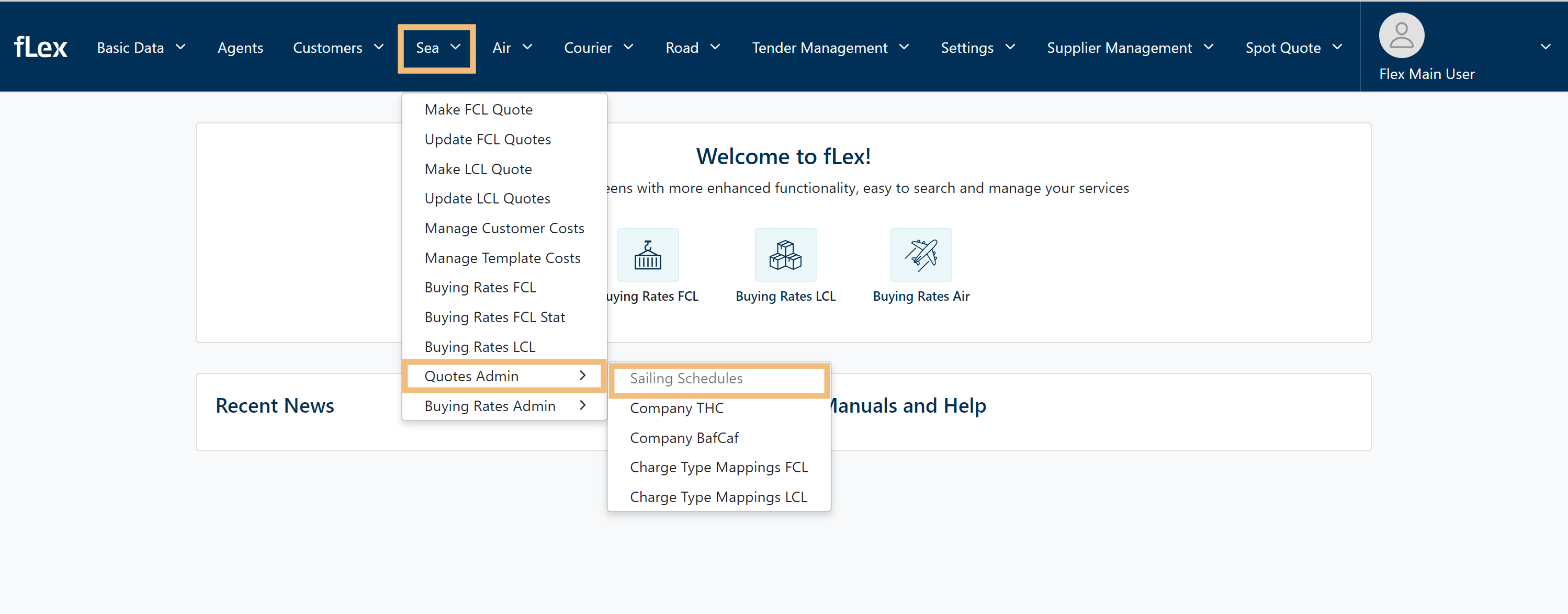 Start off by a simple mouse-over on SEA → Quotes Admin → Sailing Schedules