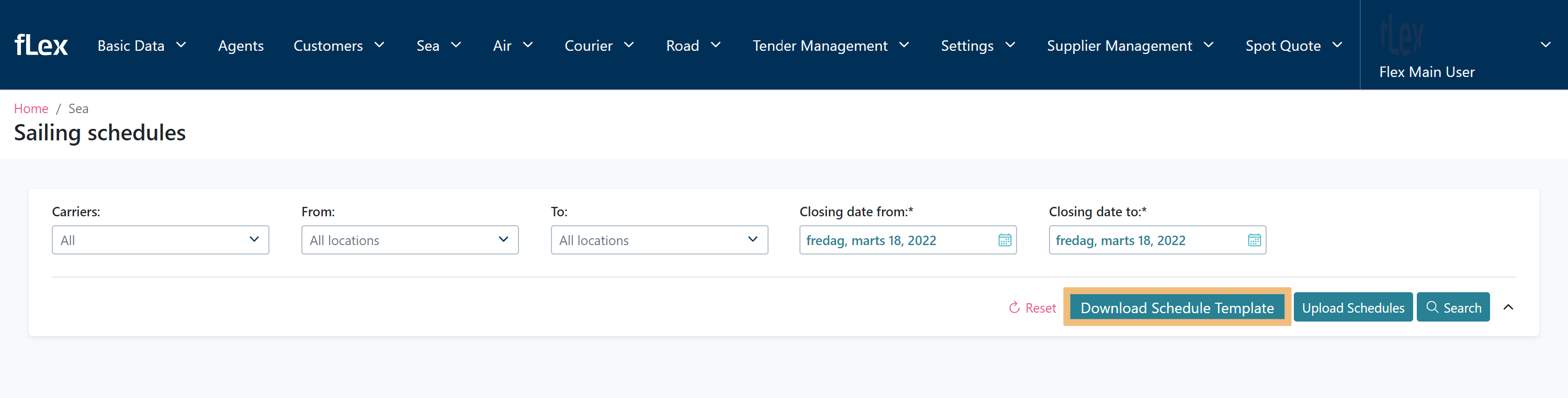 You're now in the Sailing schedules menu, from here press Download Schedule Template