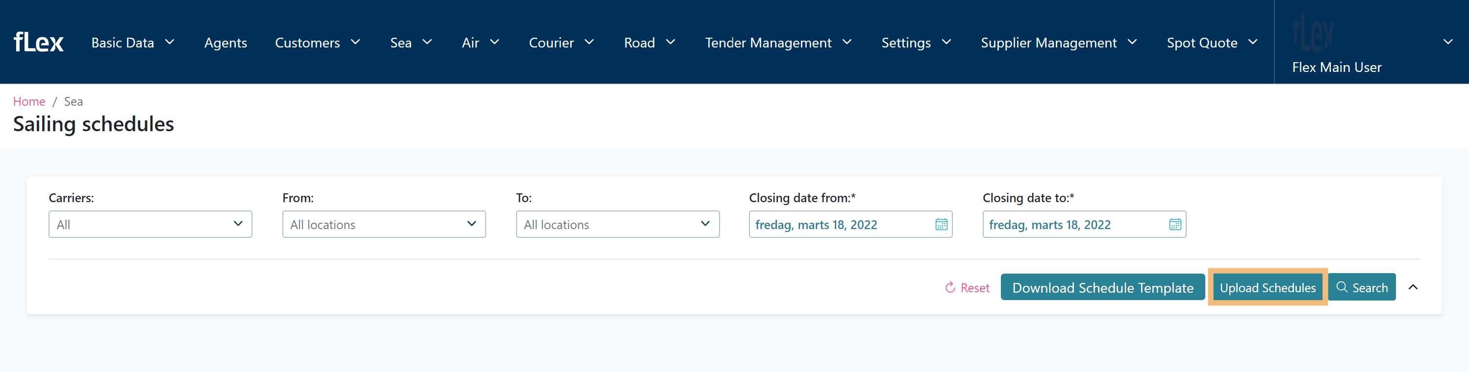 When you are done filling in the document head onto Flex again, then press Upload Schedules