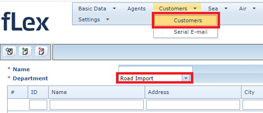 Open the specific customer in the customers page and remember to select what department the setup relates to.