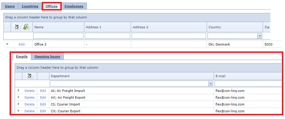 Next we need to find the office which the main contact is assigned to, where after we can insert the mail we want to be receiving the notifications.